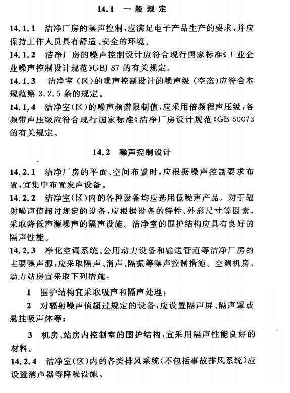 规范对洁净区噪声控制要求